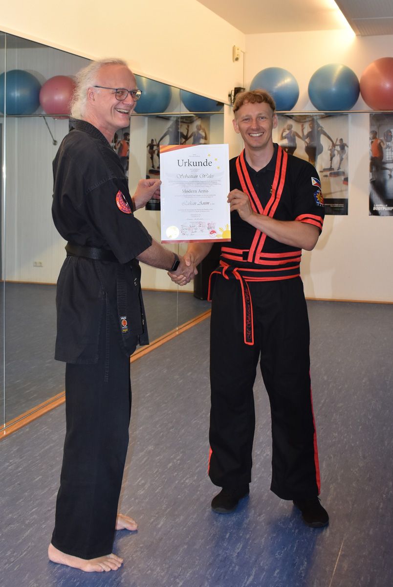 Zwei Wochen später war die gesamte Riege der Schwarzgurtträger aus der Korean Style Martial Arts Organisation dazu eingeladen als Zeugen und Richter im Rahmen einer Prüfung zum 6. Dan zu fungieren. Hauptdarsteller dieser besonderen Veranstaltung war Sebastian Wales vom Modern Arnis, der über seine sportliche Laufbahn referierte und das Gesamtkonzept seines aus den Philippinnen importierten Stils sowie sein Gurtsystem präsentierte. Mit großem Beifall und mit traditionellen Riten erhielt er diese Würde verliehen